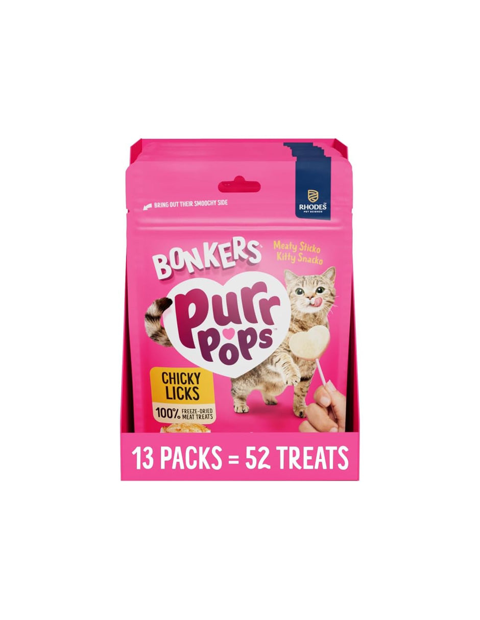 Golosinas para Gato Bonkers PurrPops de Pollo 52 paletas liofilizadas