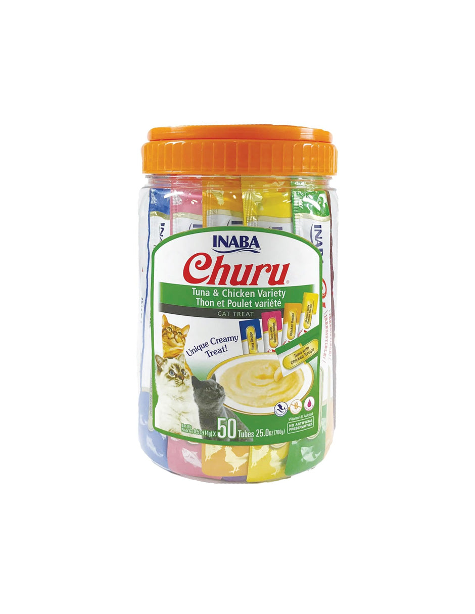 Golosinas para Gato Inaba Churu Puré Cremoso Atún y Pollo 50 Tubos