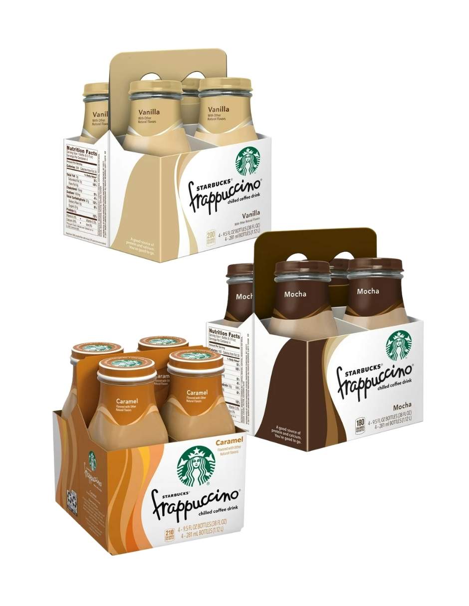 Pack Starbucks Frappuccino 4 botellas de vidrio 281ml (variedad sabores)