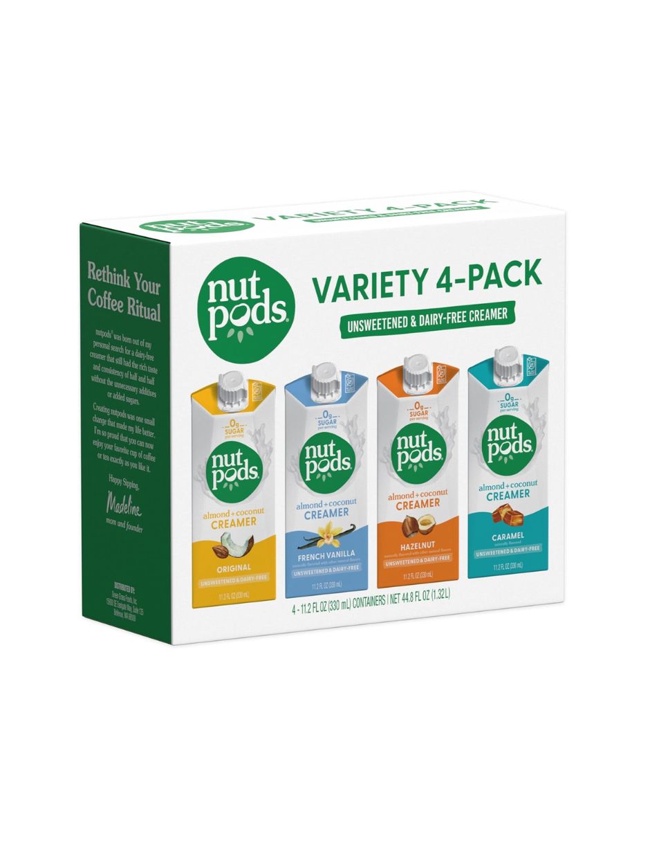 Crema para café nutpods sin azúcar sabores original, vainilla, avellana y caramelo 4 pack