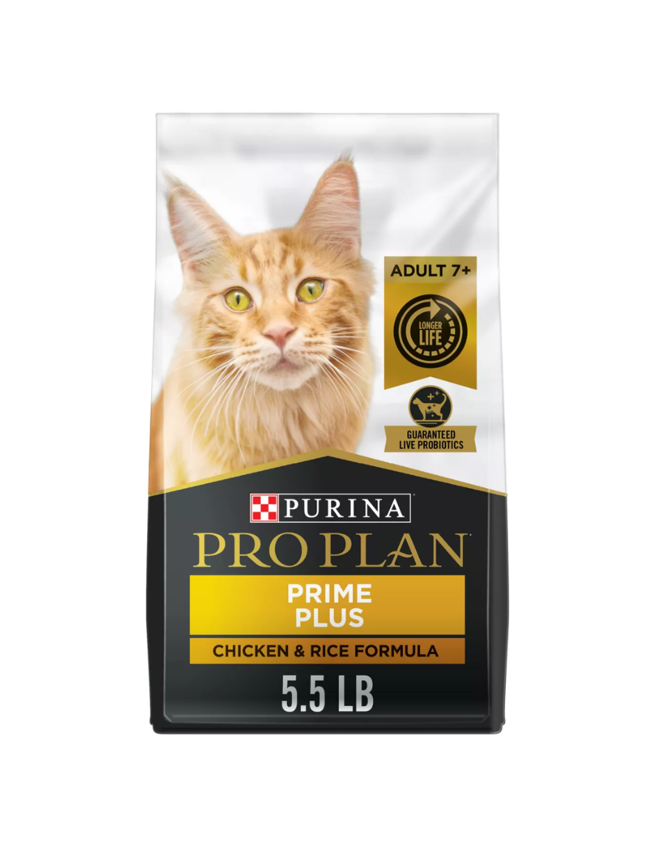 Alimento seco para gatos mayores Purina Pro Plan Prime Plus: antioxidantes, alto contenido de proteínas, pollo y arroz