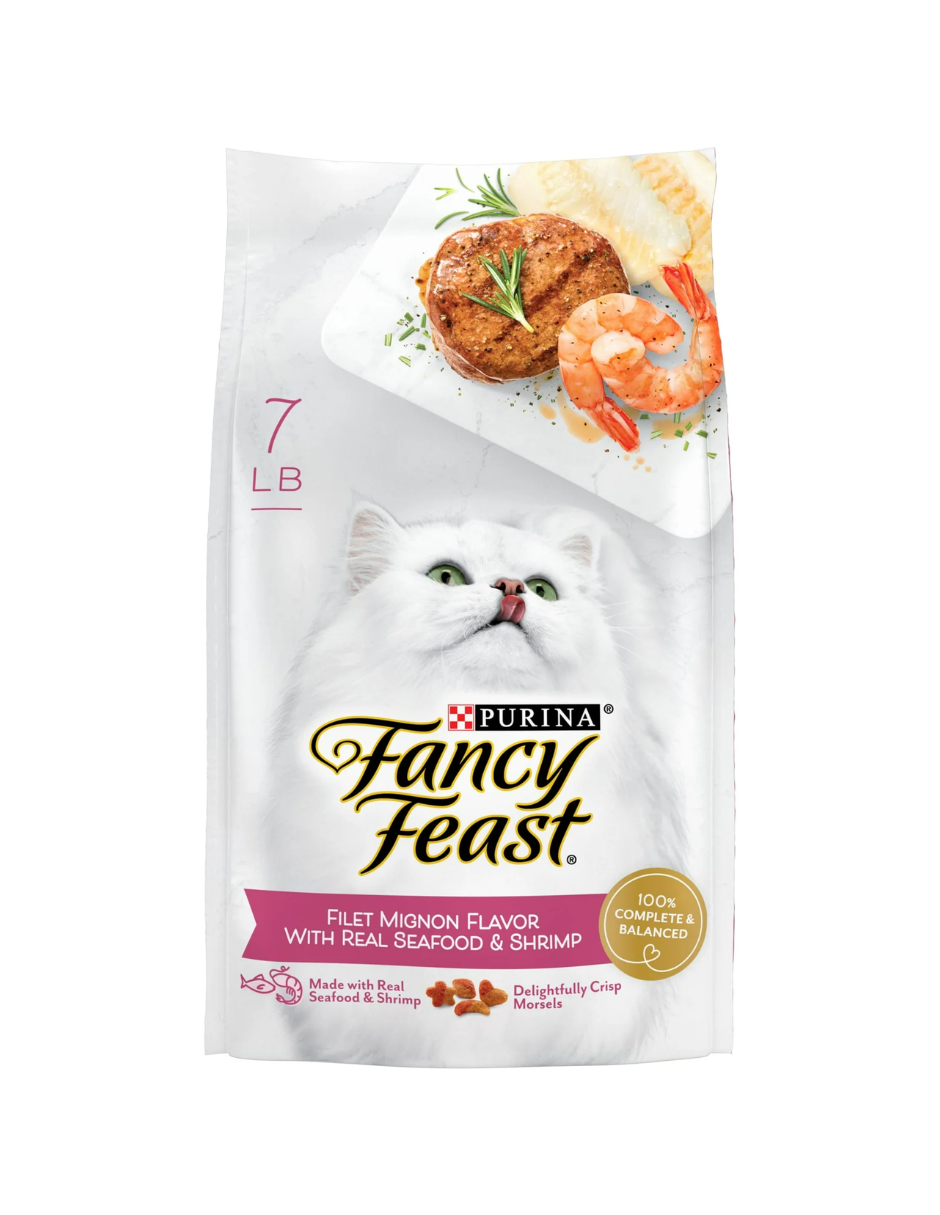 Alimento seco para gatos Purina Fancy Feast sabor filete mignon con mariscos y camarones