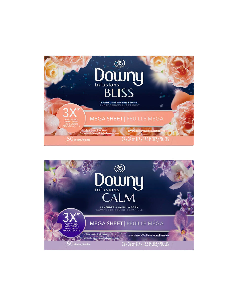 Downy Infusions Mega Toallitas para Secadora, BLISS, 80 unidades (Aroma a elegir)