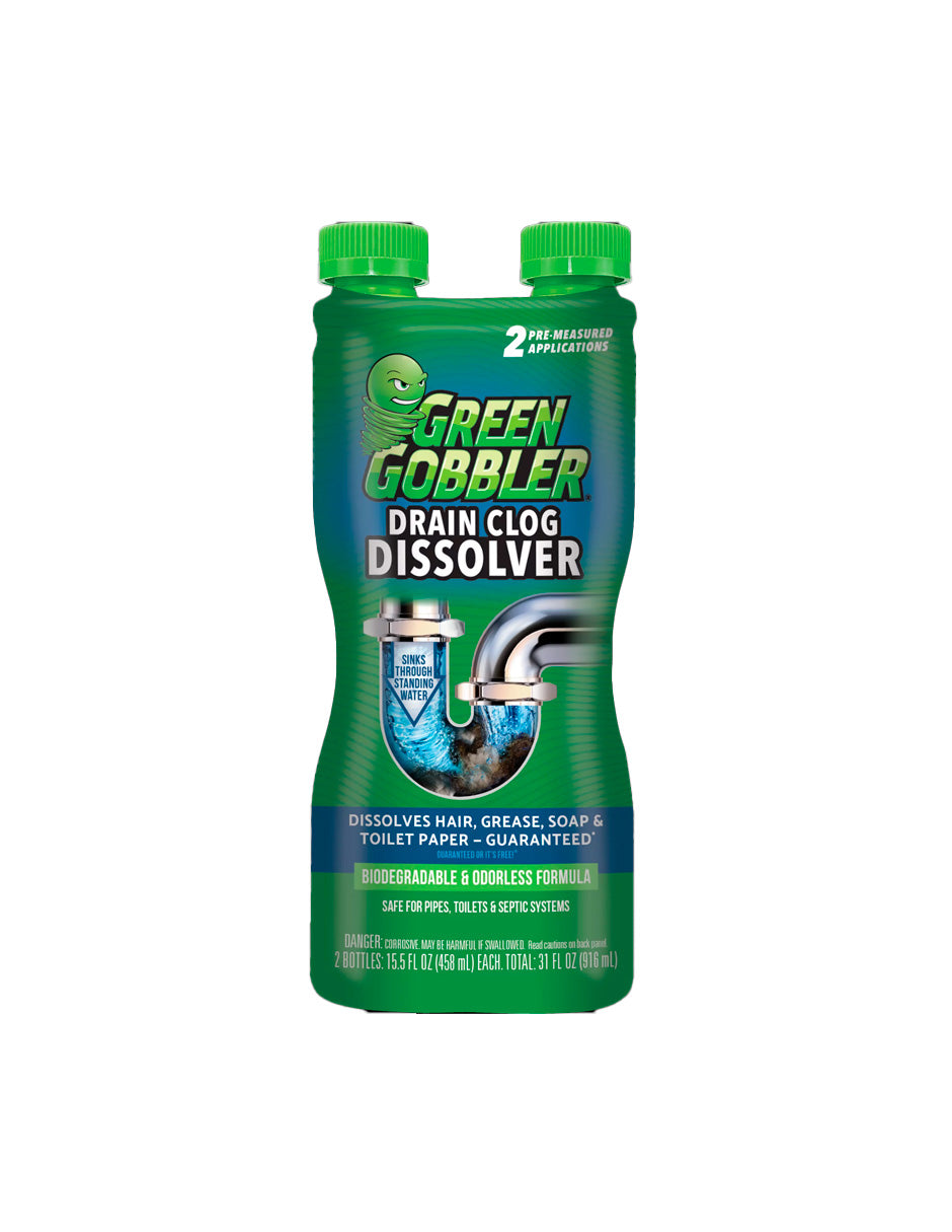 Green Gobbler Drain Clog Removedor y Limpiador para Inodoros, Lavabos y Duchas, Apto para Séptico 916ml