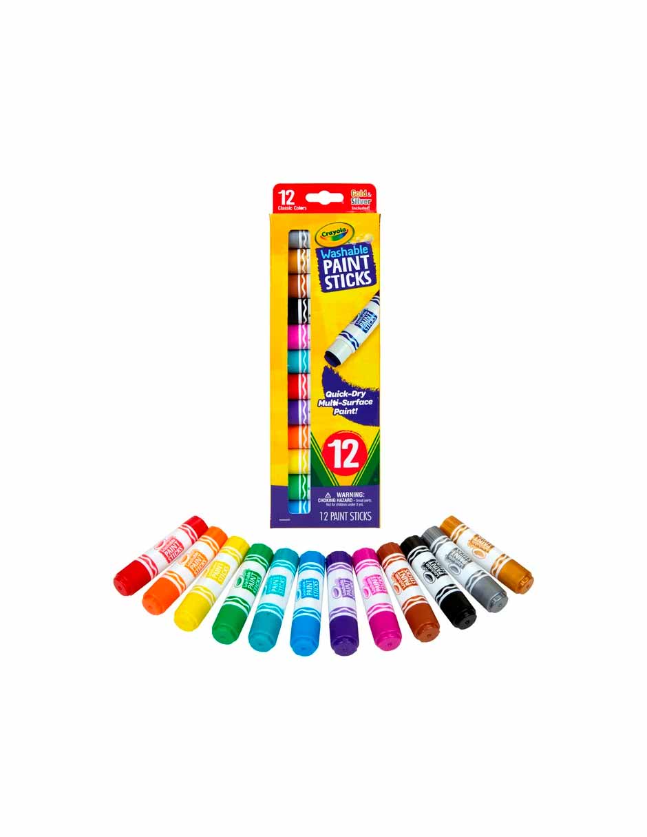 Crayola Barras de pintura de secado rápido y lavable para niños, 12 unidades