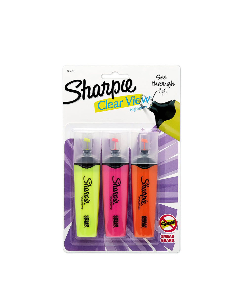 Sharpie Resaltadores de punta de cincel clear view 3 pack
