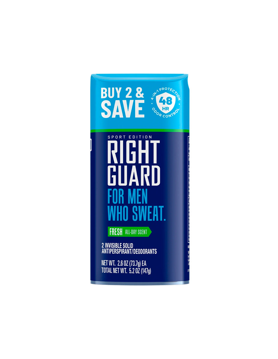 Right Guard Sport Antitranspirante y Desodorante Invisible Sólido, Protección 4 en 1 para Hombres, 2 pack