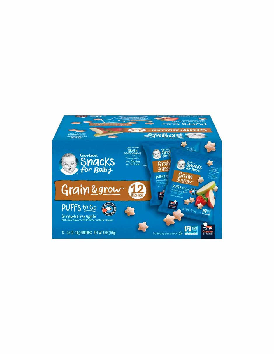 Gerber Puffs to Go Snack de grano inflado, manzana fresa, 12 pzas
