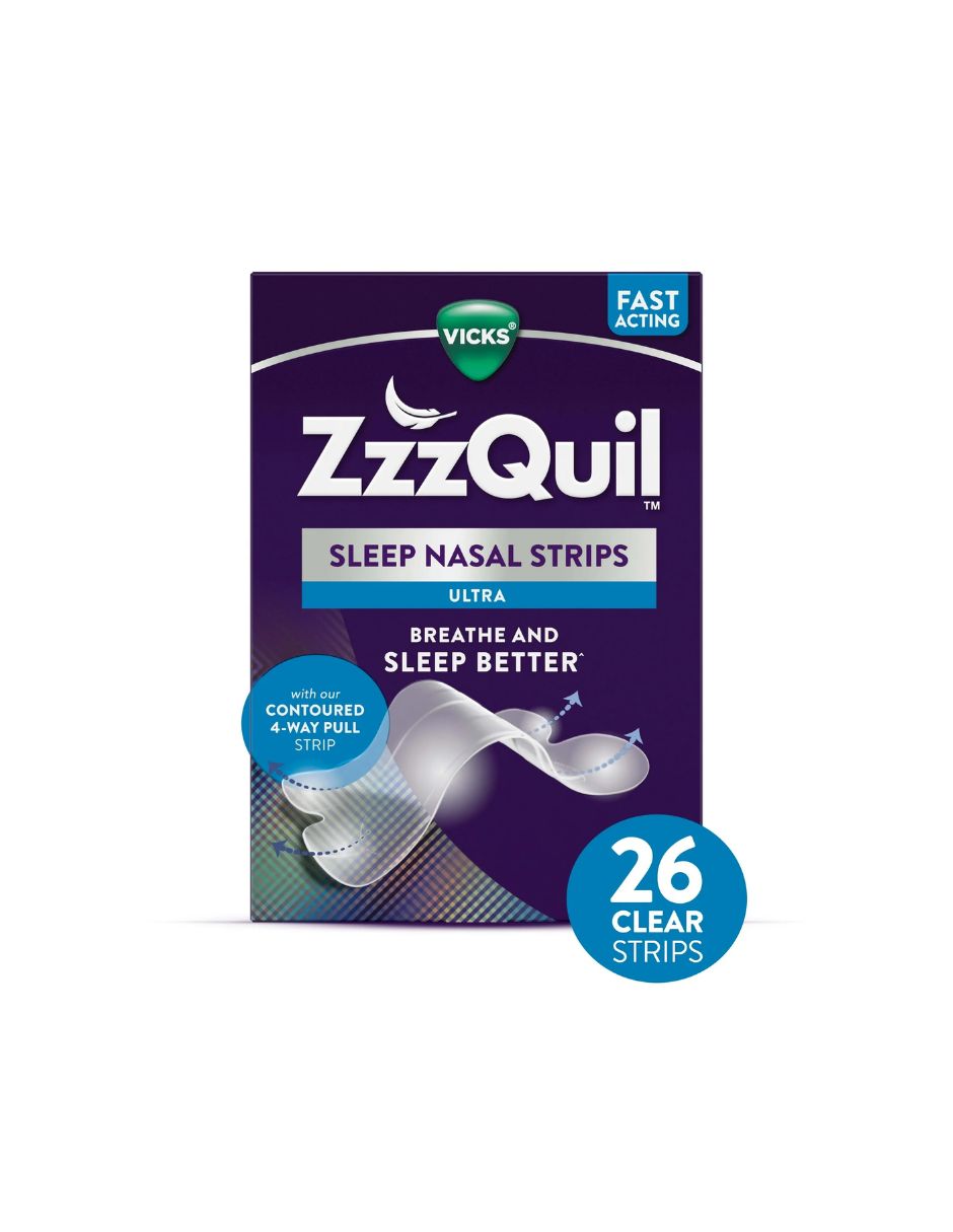 Vicks ZzzQuil Sleep tiras nasales transparentes para la noche contra los ronquidos, 26 unidades