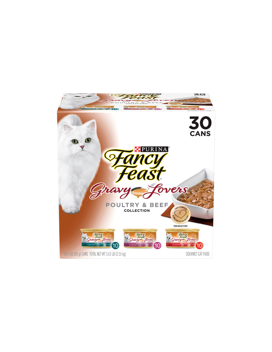 Purina Fancy Feast Gravy Lovers comida húmeda gourmet para gatos con pollo y carne de res, 30 pack