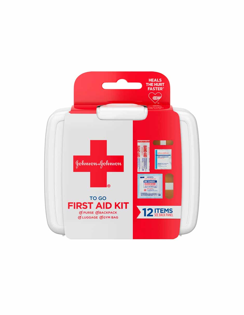 Johnson & Johnson First Aid To Go Mini kit de viaje portátil, 12 piezas