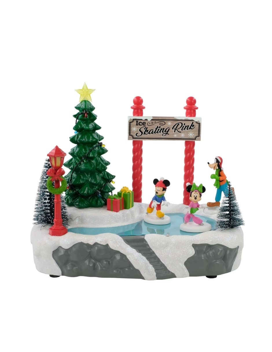 Pista de Patinaje Animada con Luces y Música Disney - Edificio Navideño con Mickey, Minnie y Goofy