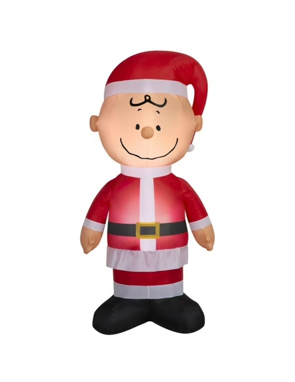 Inflable Navideño Charlie Brown con Atuendo de Papá Noel Peanuts - Decoración con Luces LED