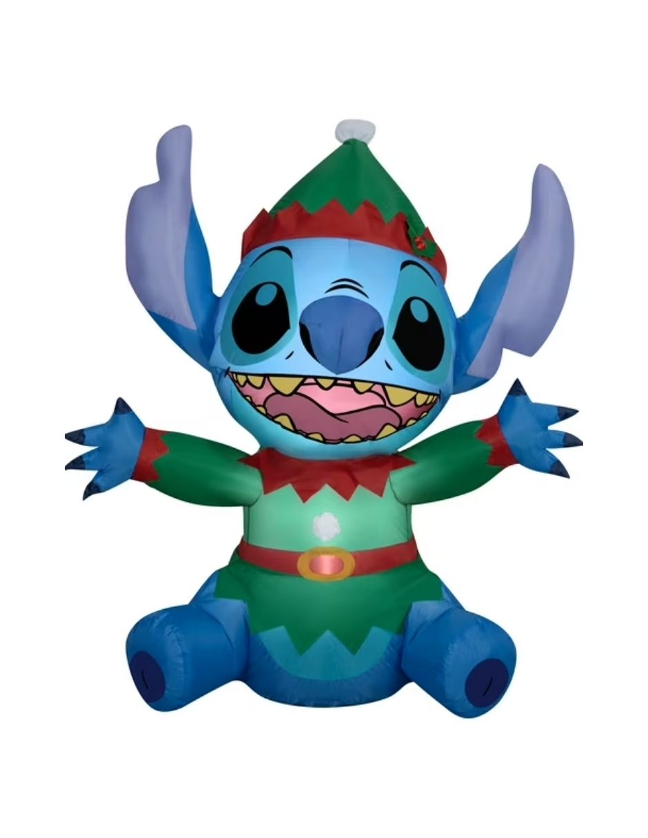 Inflable Navideño Stitch Disney como Elf - Decoración con Luces LED