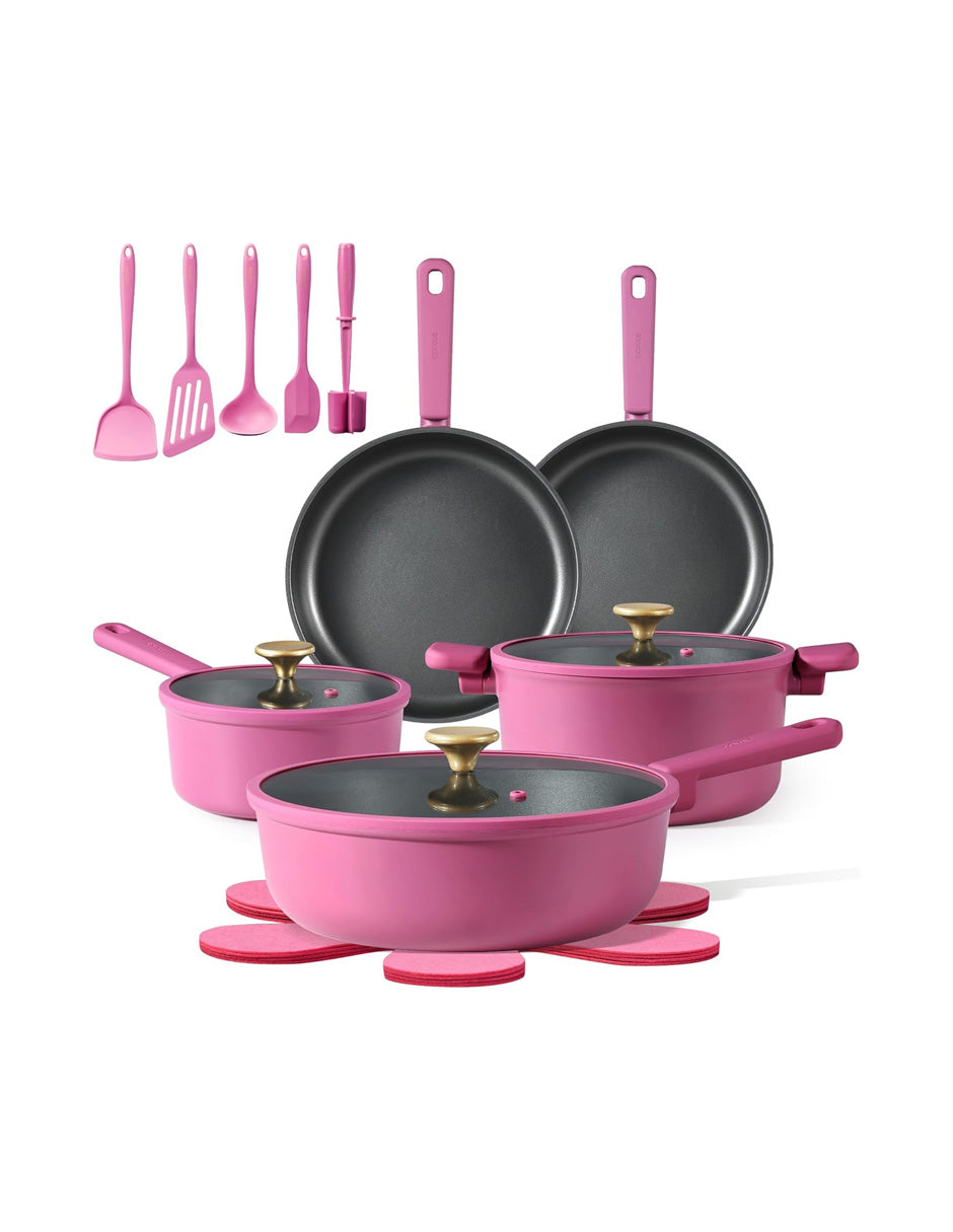 CAROTE Juego de Cocina Antiadherente 17 Piezas Magenta