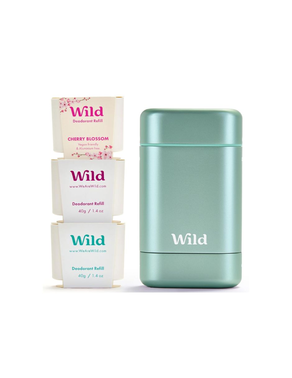Desodorante Recargable Wild Aqua, set 3 aromas sin plástico, sin aluminio