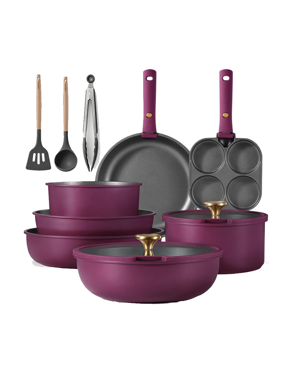 Juego de Ollas y sartenes CAROTE 19 Pzas Antiadherente color violeta