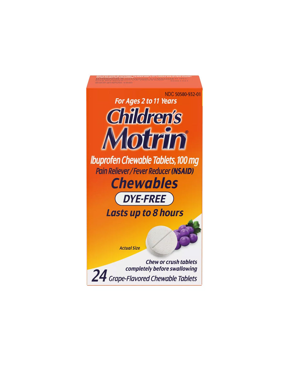 Masticables Ibuprofeno Children's Motrin 24 tabletas, Alivio del Dolor y Fiebre para Niños 2-11 Años
