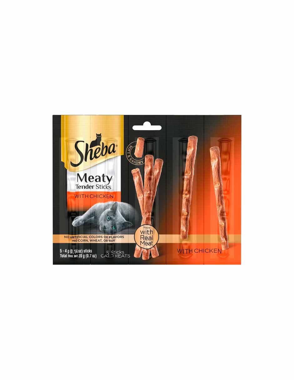 SHEBA Meaty Tender Sticks con golosinas para gatos de pollo 5 sticks