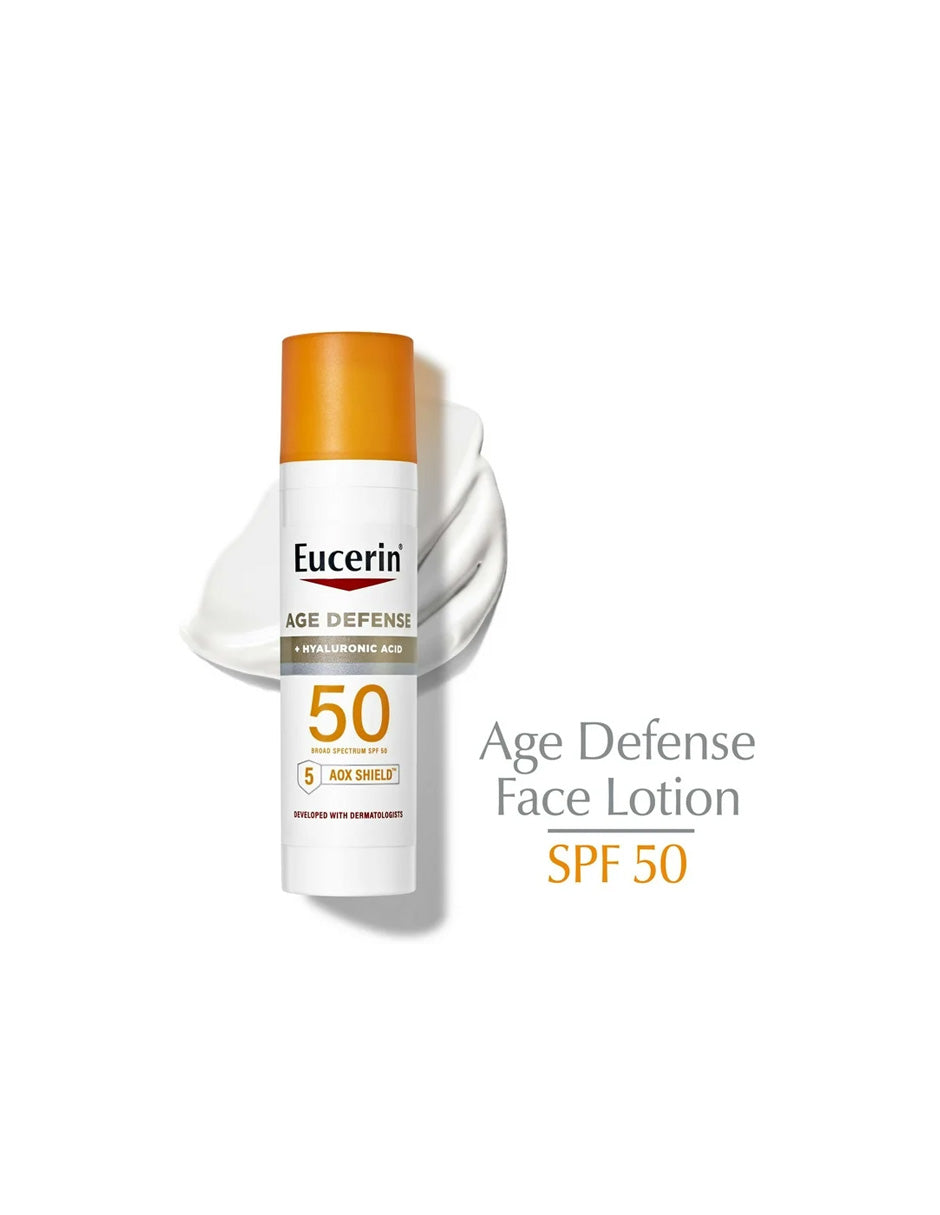 Una botella de 2,5 onzas líquidas de Eucerin Sun Age Defense SPF 50 Face Sunscreen Lotion Protector solar...Precio habitual $ 865.00 MXNPrecio de oferta $ 865.00 MXN Precio habitualPrecio unitario por -