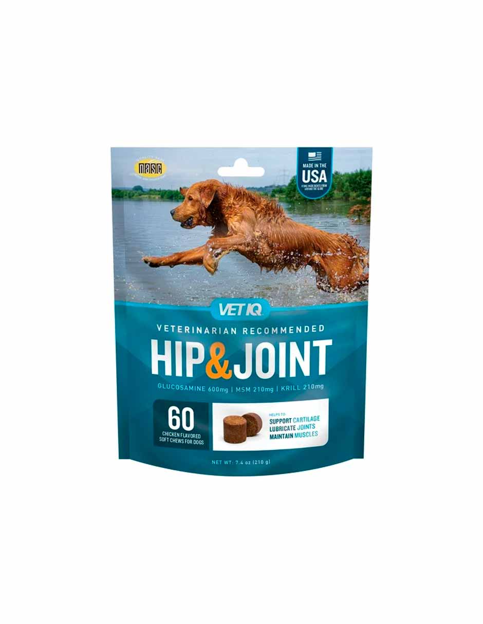 VetIQ Suplemento de cadera y articulaciones para perros, masticables con sabor a pollo, 60 unidades