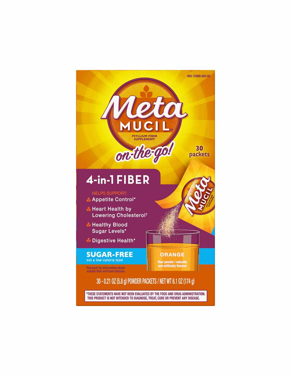Mezcla de bebida sin azúcar Metamucil suplemento fibra, 30 unidades