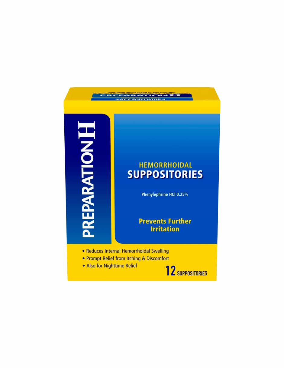 Preparación H supositorios para alivio de hemorroides, ardor y picazón, 12 unidades