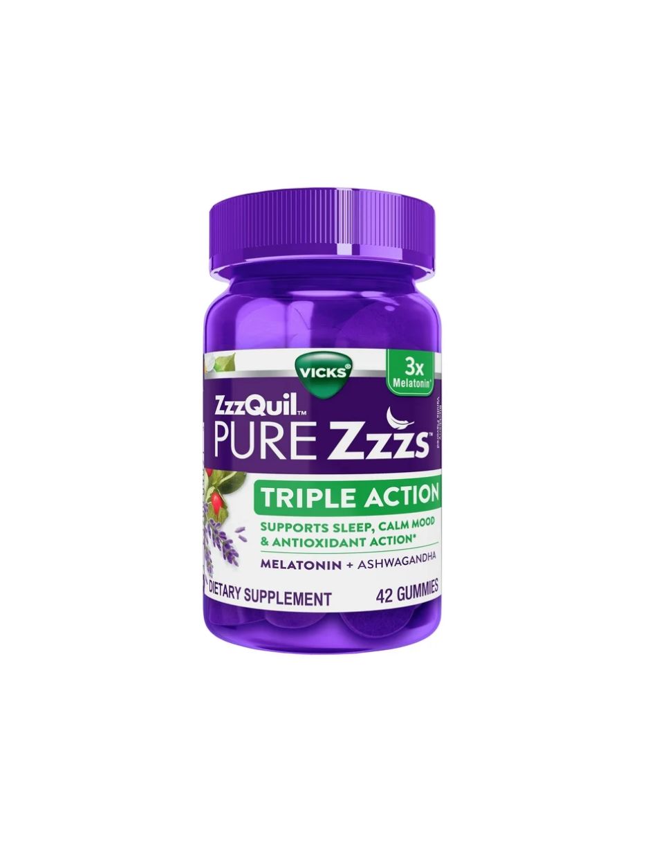 Vicks Zzzquil Triple acción gomitas melatonina ayuda para dormir, 6 mg, 42 unidades