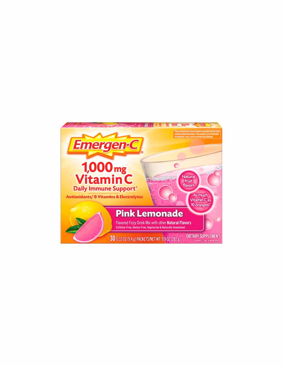 Emergen-c Polvo de vitamina C para apoyo inmunológico sabor limonada rosa 30 unidades