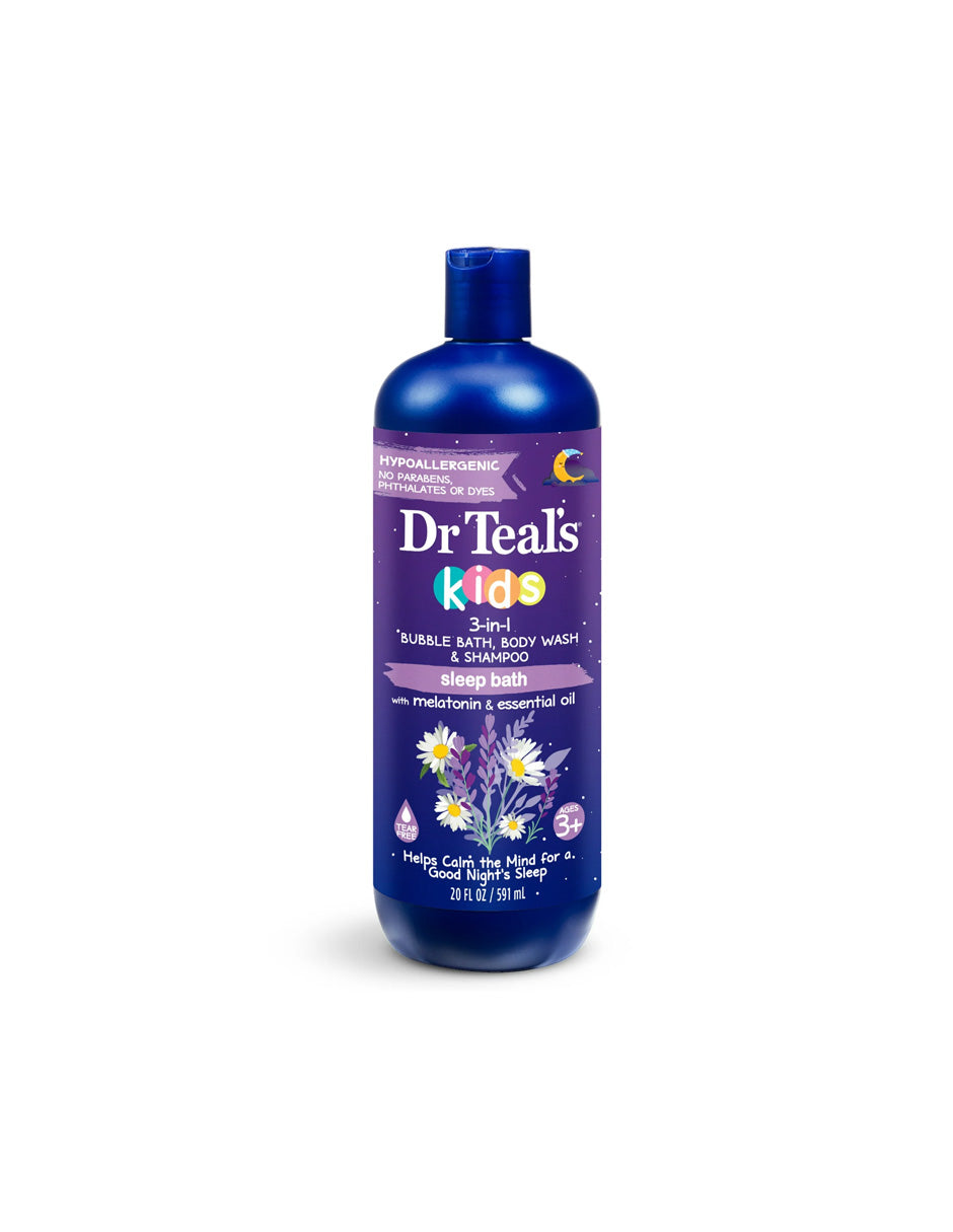 Dr Teal's Kids Melatonin 3 en 1 baño de burbujas, gel de baño y champú 591ml