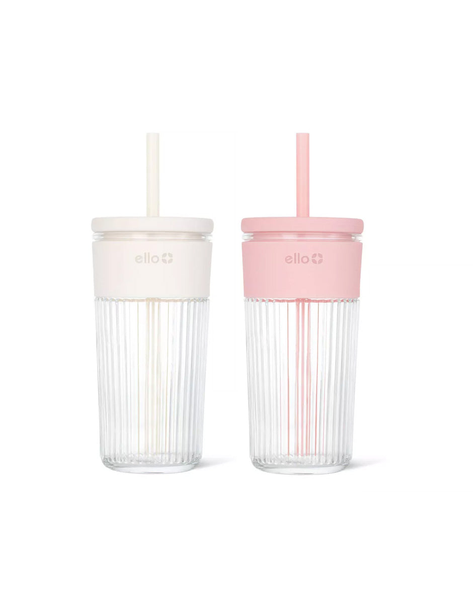 Vaso de Vidrio con Popote Ello Ava 547 ml (variedad)