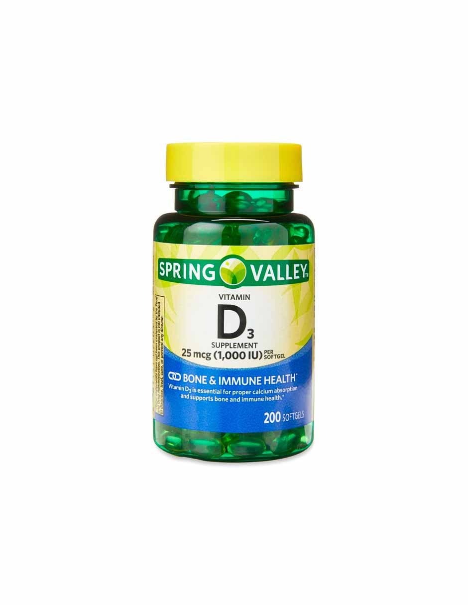 Spring Valley Vitamina D3 cápsulas blandas, 25 mcg (1000 UI), 200 unidades