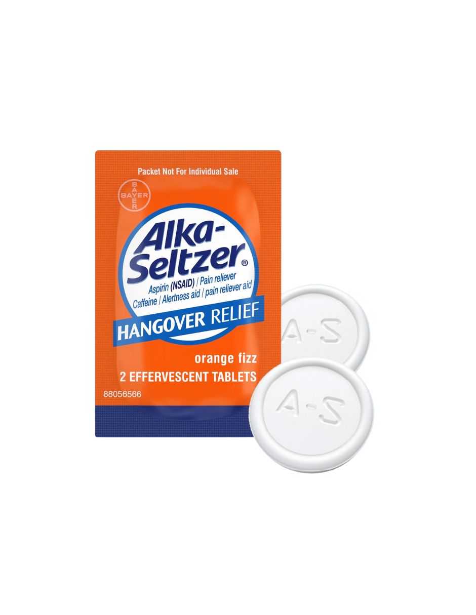 Dolores de cabeza, dolores corporales y fatiga mental... ya conoces la sensación. Después de una noche divertida con tus amigos y familiares, necesitas un alivio para la resaca que realmente funcione. Después de tomar Alka-Seltzer Hangover Relief, comenzará a sentirse despierto, consciente y alerta para recuperarse y retomar su día a la mañana siguiente. La cafeína en nuestra fórmula aumenta los efectos analgésicos de la aspirina hasta en un 40 % para que puedas sentirte mejor rápidamente. La sabrosa solución para aliviar la resaca con gas de color naranja le devuelve el ánimo a su paso para que pueda recuperarse rápidamente. Simplemente abra el paquete, coloque dos tabletas en 4 oz. de agua, mírala burbujear y ¡bébela! No se necesita una larga recuperación. Alka-Seltzer ha sido una marca confiable durante más de 90 años y ahora ofrece una solución para aliviar sus peores resacas.