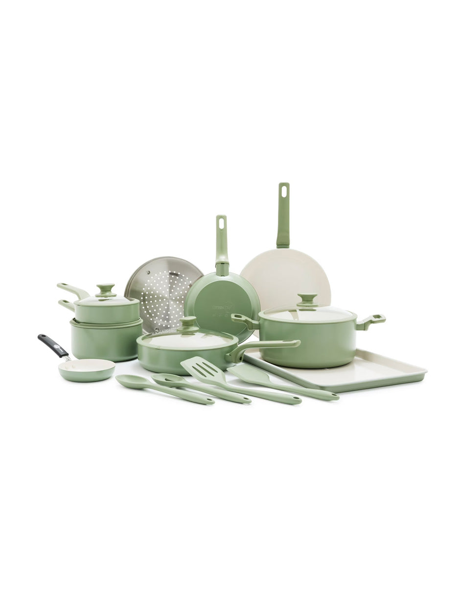 Batería Cerámica 17 Piezas GreenPan Essence color verde salvia