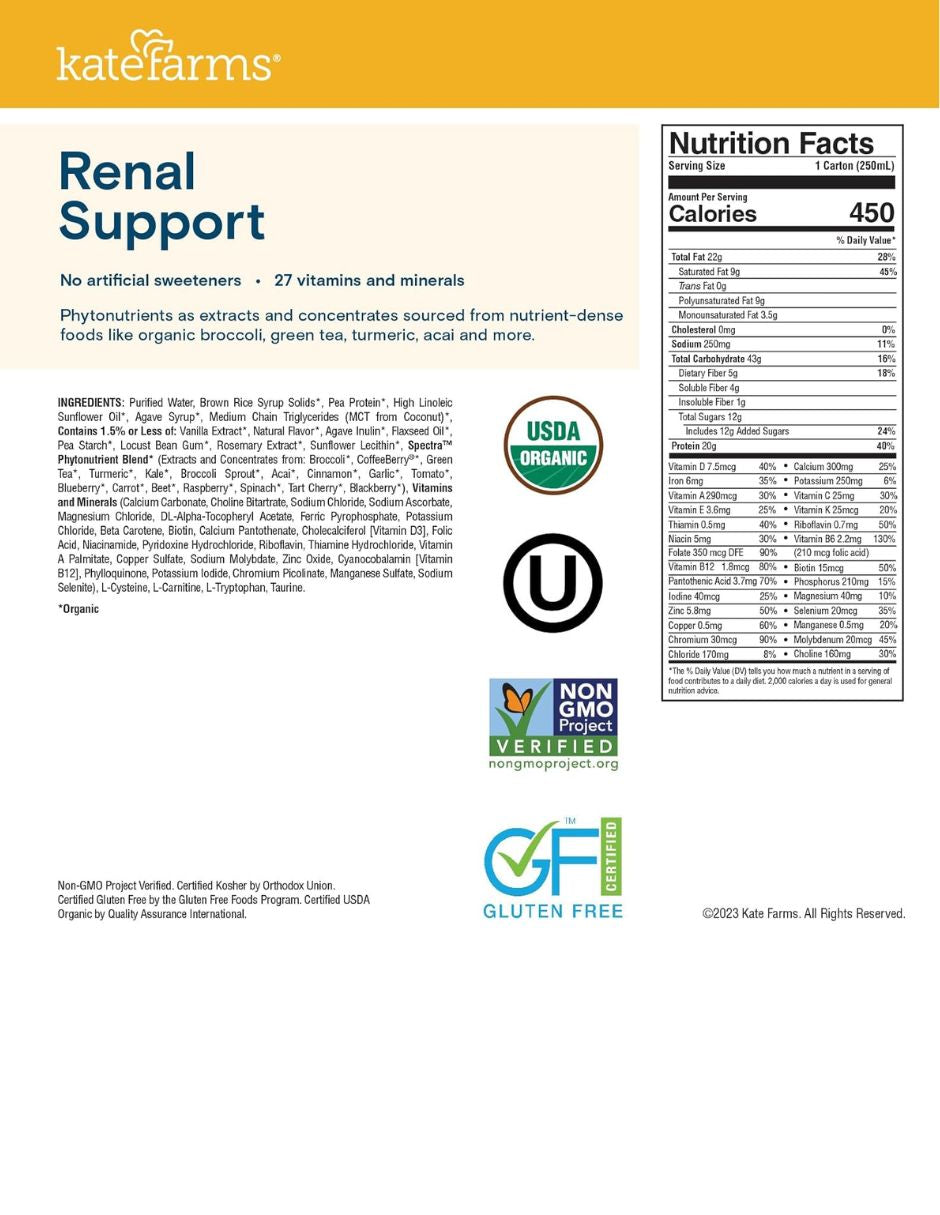 Bebida Nutricional Kate Farms Vainilla Apoyo Renal 12 pack