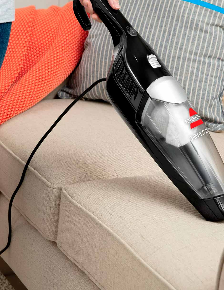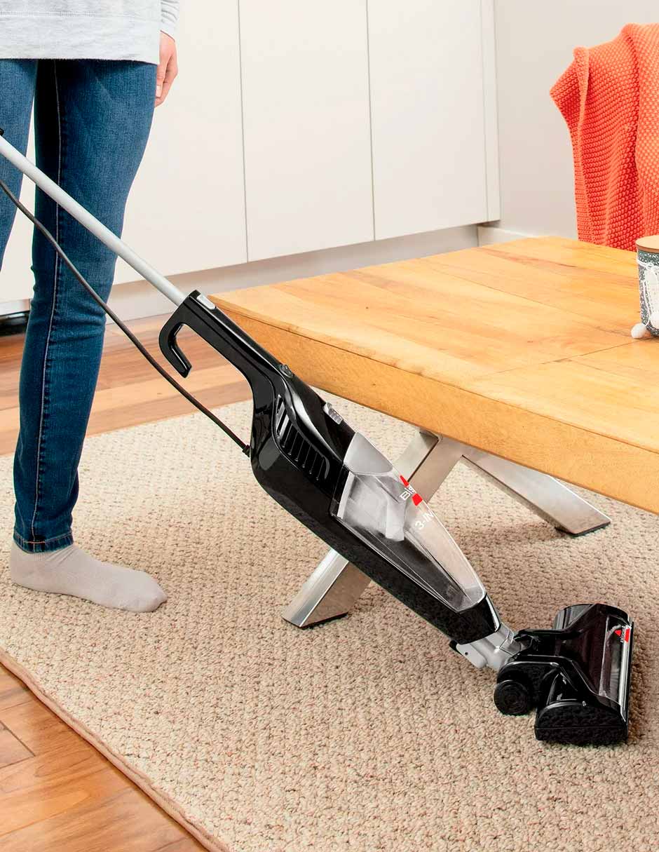 La aspiradora de varilla con cable liviana Turbo 3 en 1 de BISSELL® le brinda una limpieza conveniente y efectiva al convertirla rápida y fácilmente en tres máquinas diferentes. El Turbo 3 en 1 se puede usar como una aspiradora de varilla liviana y potente para recoger rápidamente la suciedad en múltiples superficies, incluidas alfombras, tapetes y pisos duros. Luego, con la rápida comodidad del mango de liberación rápida, la máquina se convierte fácilmente en una aspiradora de mano para limpiar superficies de pisos y tapizados, y mantiene el pie en la aspiradora de mano para limpiar escaleras. Esta máquina ultraligera también pesa menos de 4 libras. Por lo tanto, es fácil de usar y transportar a casa, y luego fácil de guardar cuando haya terminado de limpiar.