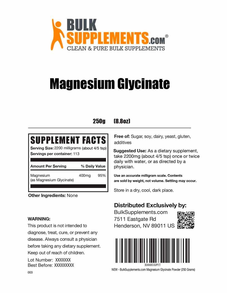 BulkSupplements Glicinato de magnesio en polvo 250gr