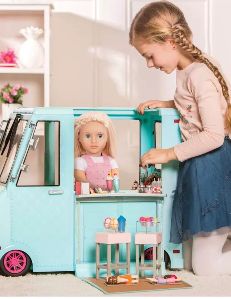 Camión de Helados Our Generation 128 Piezas con Luces y Sonido para Muñecas de 45 cm