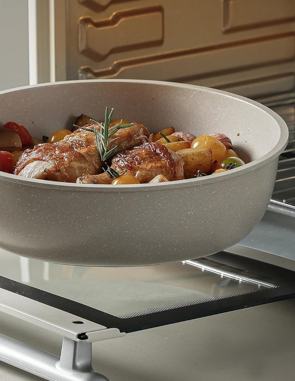 Disfruta de una experiencia de cocina funcional con el juego CAROTE de ollas y sartenes antiadherentes con mango extraíble. Su diseño apilable permite ahorrar hasta un 70 % de espacio, manteniendo la cocina organizada. Fabricado con materiales de alta calidad, ofrece una cocción uniforme y una superficie fácil de limpiar gracias a su revestimiento antiadherente resistente. Las asas desmontables brindan un agarre firme y seguro, adaptándose al uso en estufa, horno, parrilla o refrigerador. Compatible con cocinas de inducción y apto para lavavajillas.