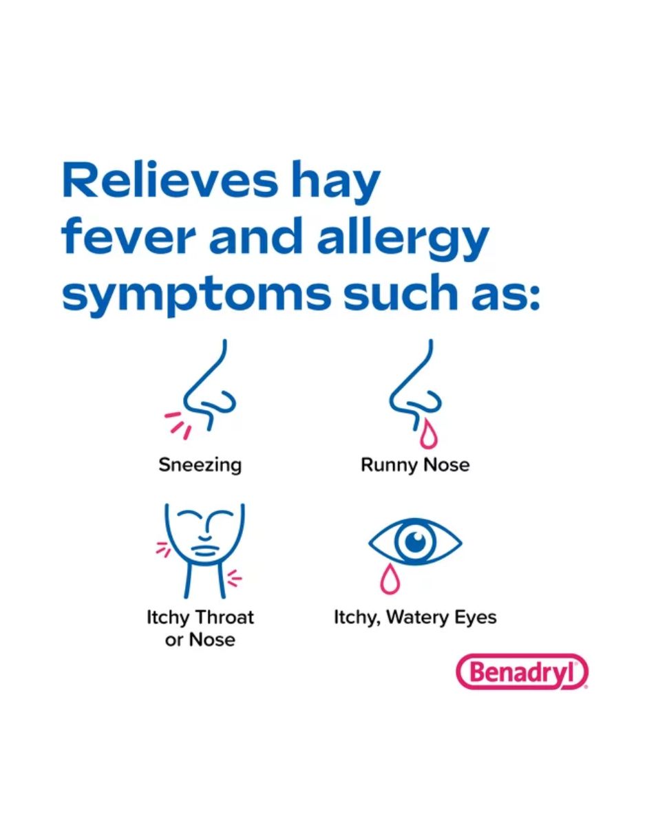- Diseñado para edades de 6 a 11 años, el medicamento líquido para alergias Benadryl para niños no contiene alcohol ni colorantes.