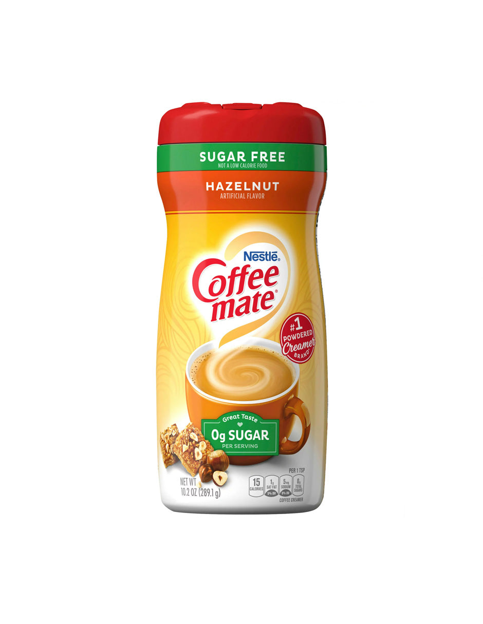 - Una botella de 10.2 oz de Nestlé Coffee mate Sugar Free* Hazelnut Flavored Powder Coffee Creamer