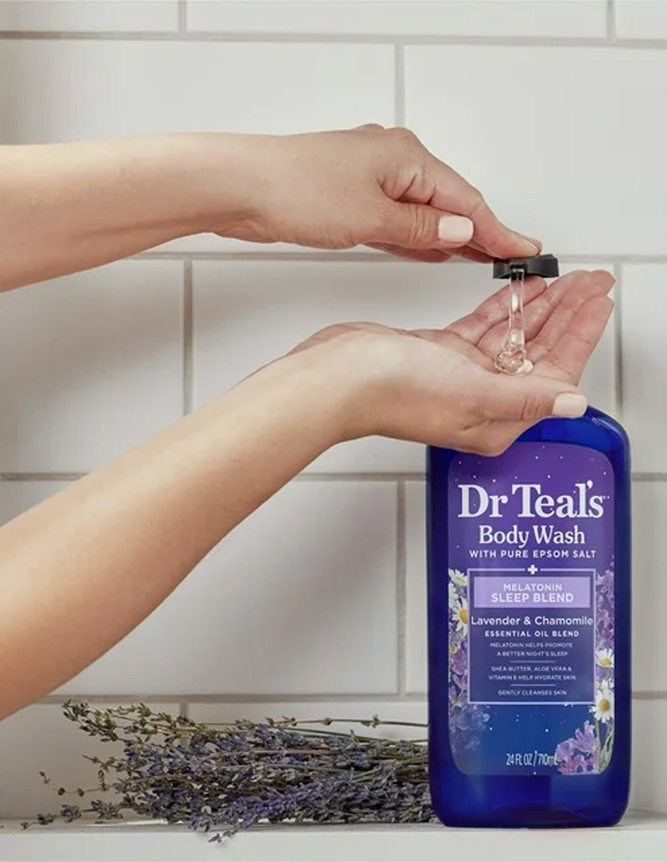 Dr Teal's Sleep Body Wash con melatonina, lavanda, manzanilla y mezcla de aceites esenciales, 24 onzas líquidas