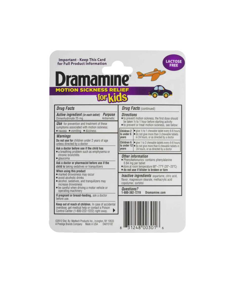 Dramamine para niños, masticable, sabor a uva, 8 unidades