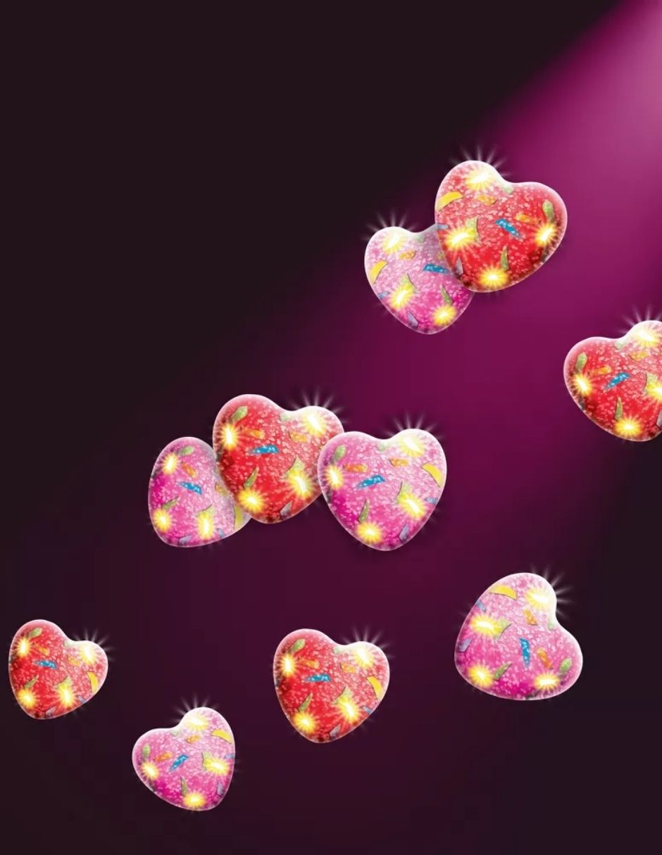 - Estas gomitas Glow Ups Hearts se distinguen por su confeti comestible que reacciona bajo luz negra, aportando un efecto visual atractivo para fiestas temáticas, reuniones nocturnas o eventos especiales.