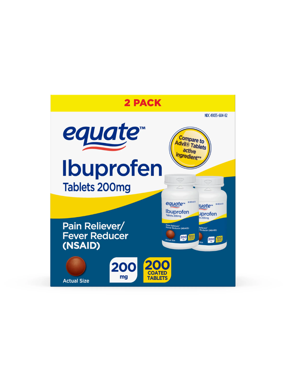 Equate Ibuprofen Tablets 2 pack 200 mg, Analgésico 200ct