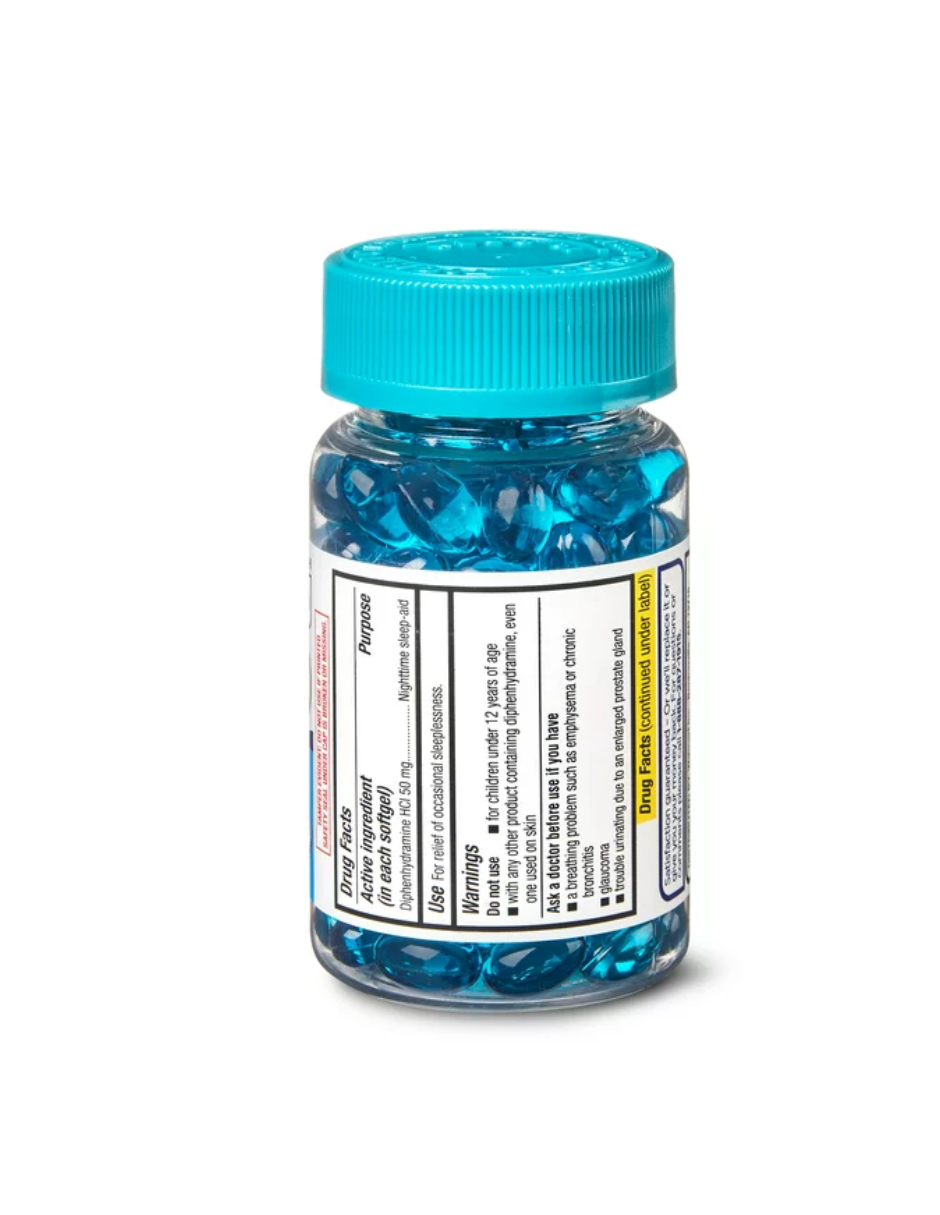 - Contiene 50 miligramos de difenhidramina por dosis.