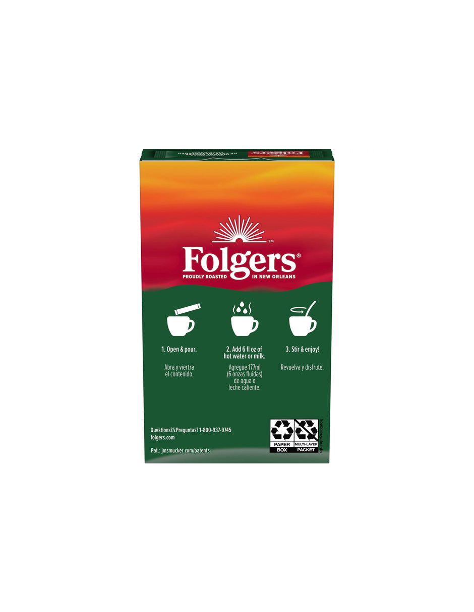 - Contiene una (1) caja de 6 paquetes de cristales de café instantáneo descafeinado clásico Folgers.