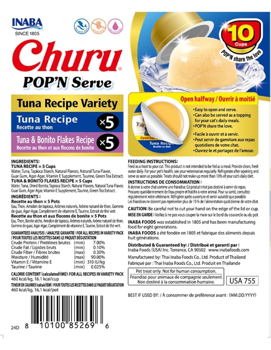 Golosina en Gelatina para Gatos INABA Churu Pop’N Serve Jelly Atún 10 cups