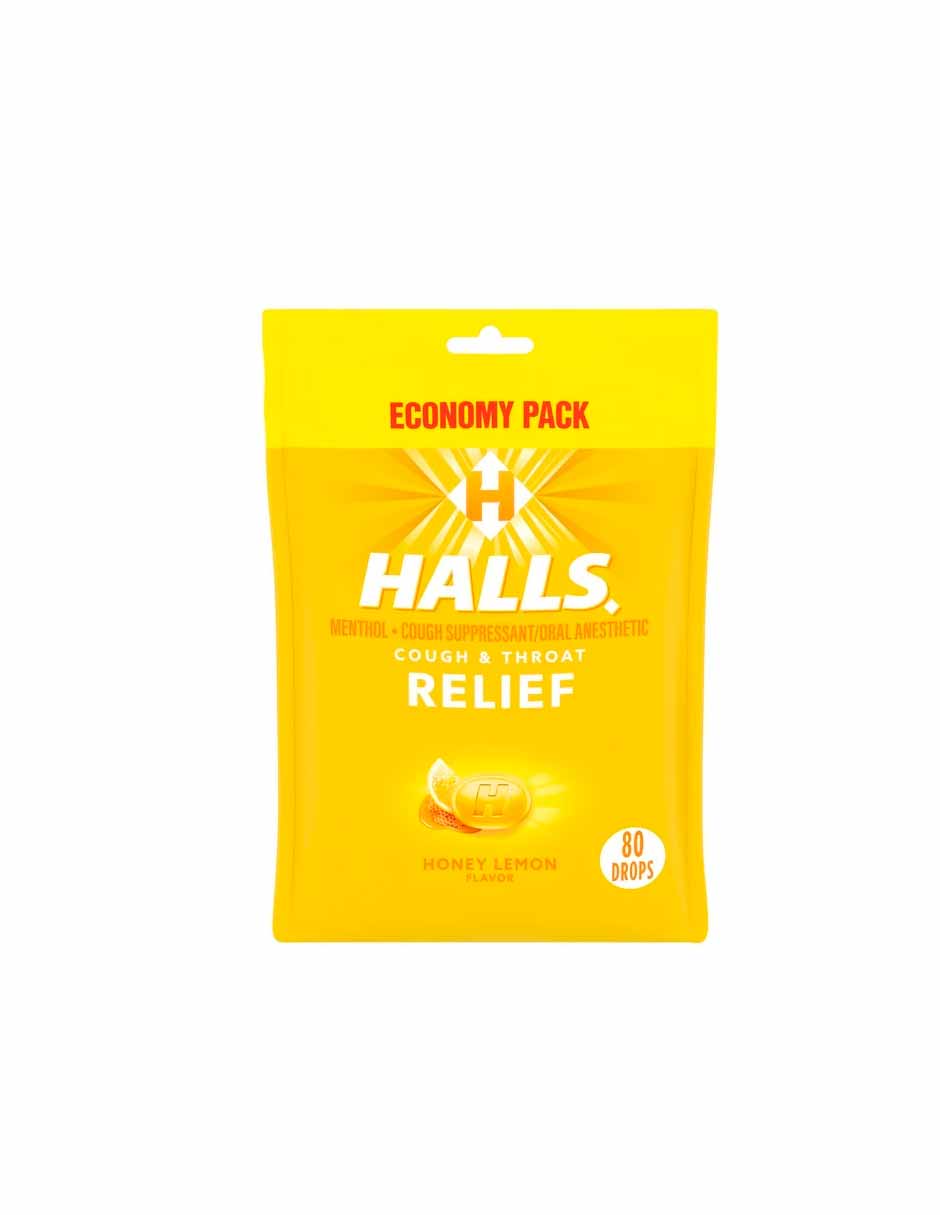Las pastillas para la tos HALLS Relief están listas para cualquier cosa que la vida le depare o le depare la tos. Con 7,5 mg de mentol por gota, estas pastillas para la garganta alivian la tos, alivian el dolor de garganta y refrescan las fosas nasales para aliviar los peores síntomas. Este eficaz supresor de la tos viene en un refrescante pero relajante sabor a miel y limón. Cada bolsa de tamaño económico viene con 80 gotas envueltas individualmente y se puede volver a cerrar.