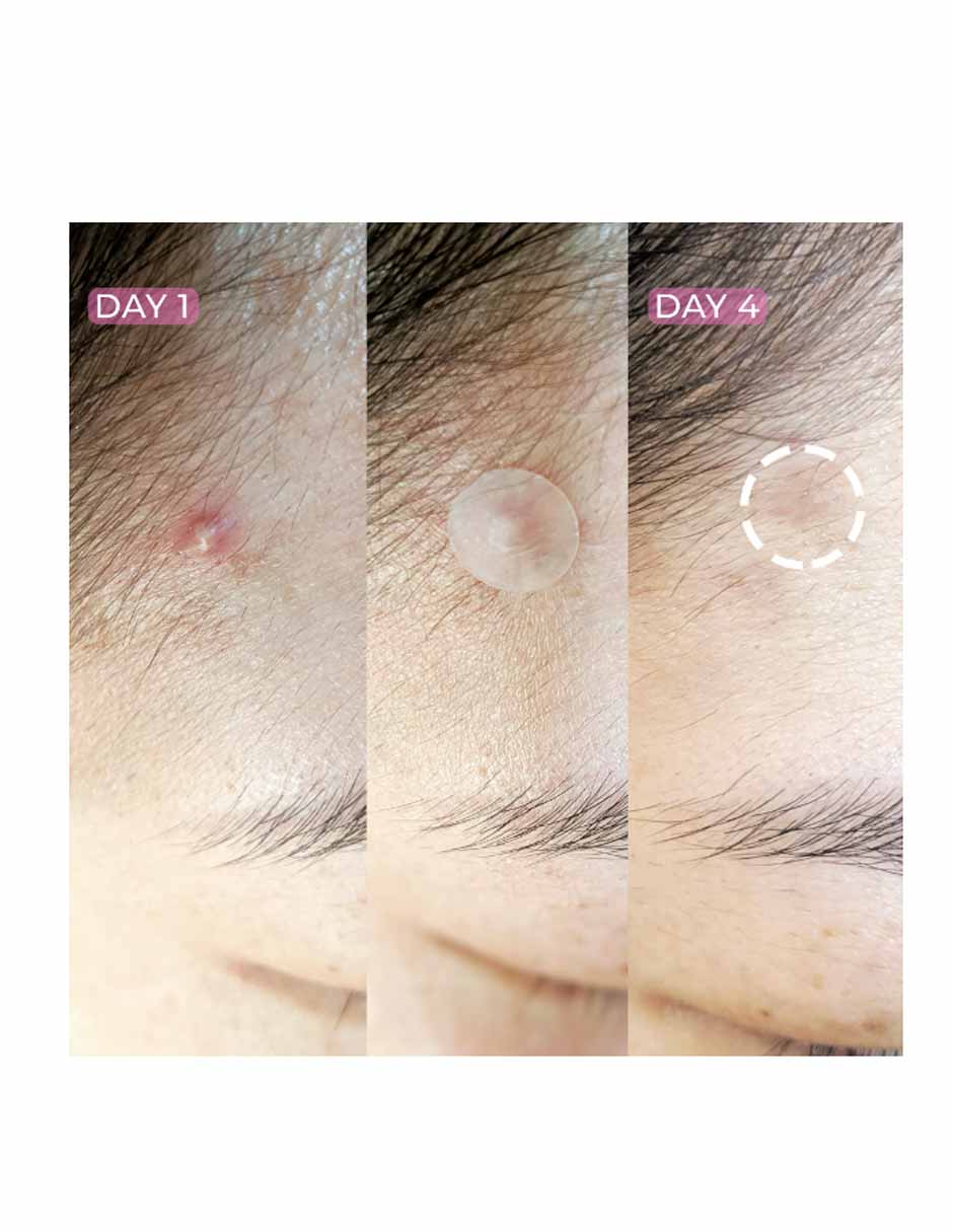 Absorbe el pus, el aceite y las impurezas de la piel y se puede usar de día o de noche en el mismo lugar hasta 8 horas sin irritación